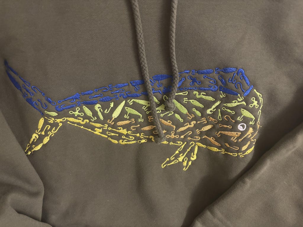 This heavy weight hoodie is a go to for any cold weather climate. For those chilly days out on the water when the only thing that is biting is the wind. This hoodie will give you the warm hug you need. Featuring our Mahi-Mahi design and custom green hood liner.